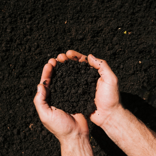 Terra enriquecida com matéria orgânica, garantindo nutrição adequada para o desenvolvimento das gramas.