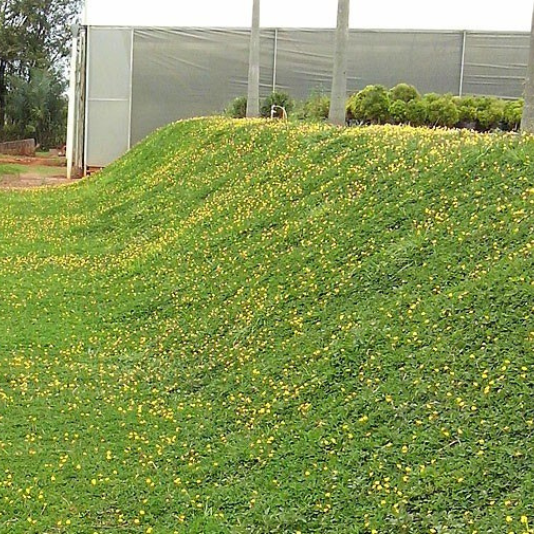 A Grama amendoim (Arachis repens), que, apesar do nome, não é uma gramínea, mas sim uma leguminosa rasteira. É uma opção muito interessante e de baixa manutenção para cobrir o solo. Confira suas principais características: